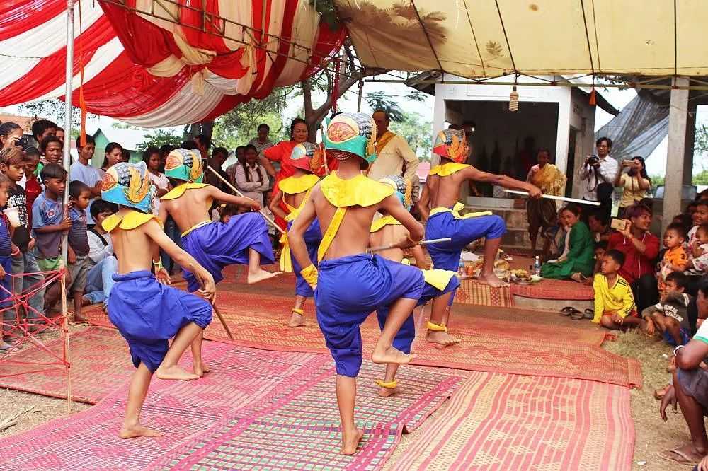 The performance of the mask dance serves a ritual purpose, mainly related to the rice-growing cycle and the needs of an agricultural society. The dance methods are passed down orally within the community. The chief monk and a retired primary school headmaster have recently opened additional weekend classes and started writing scripts for selected episodes. However, after generations of transmission, several factors now threaten the survival of this activity, including environmental factors, insufficient resources, population outflow from the community, and a 14-year interruption in transmission from 1970 to 1984 due to war and the Khmer Rouge regime.