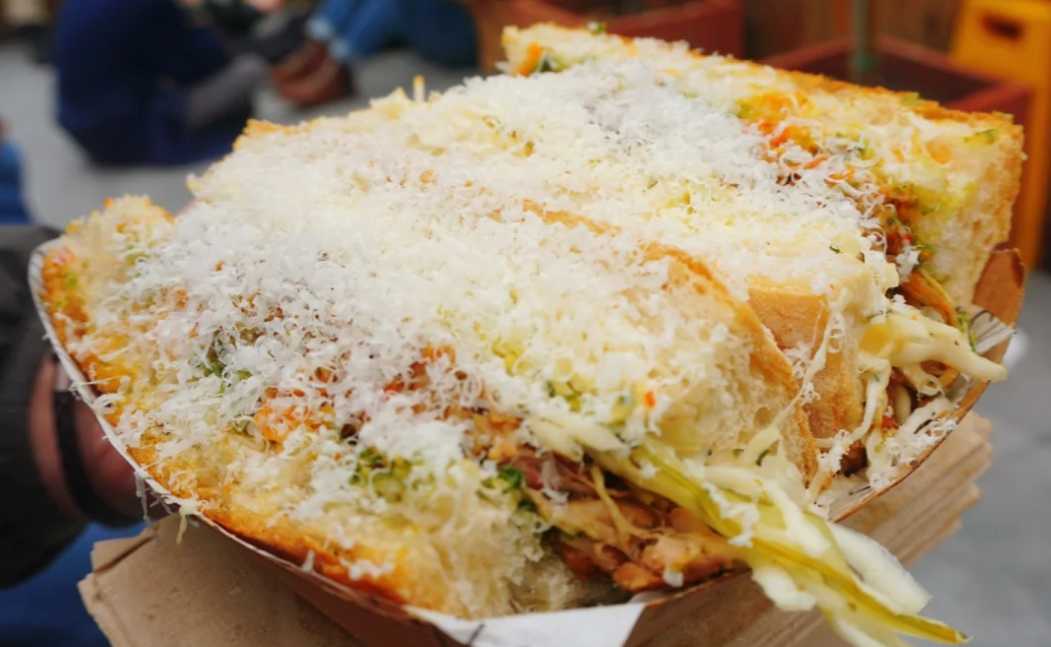 This is an extremely large sandwich filled with plenty of pork, shredded lettuce, various sauces, and cheese, almost overflowing. Every bite is a mouthful of satisfaction. It's a far cry from the sandwiches sold in supermarkets, and it's freshly made too.