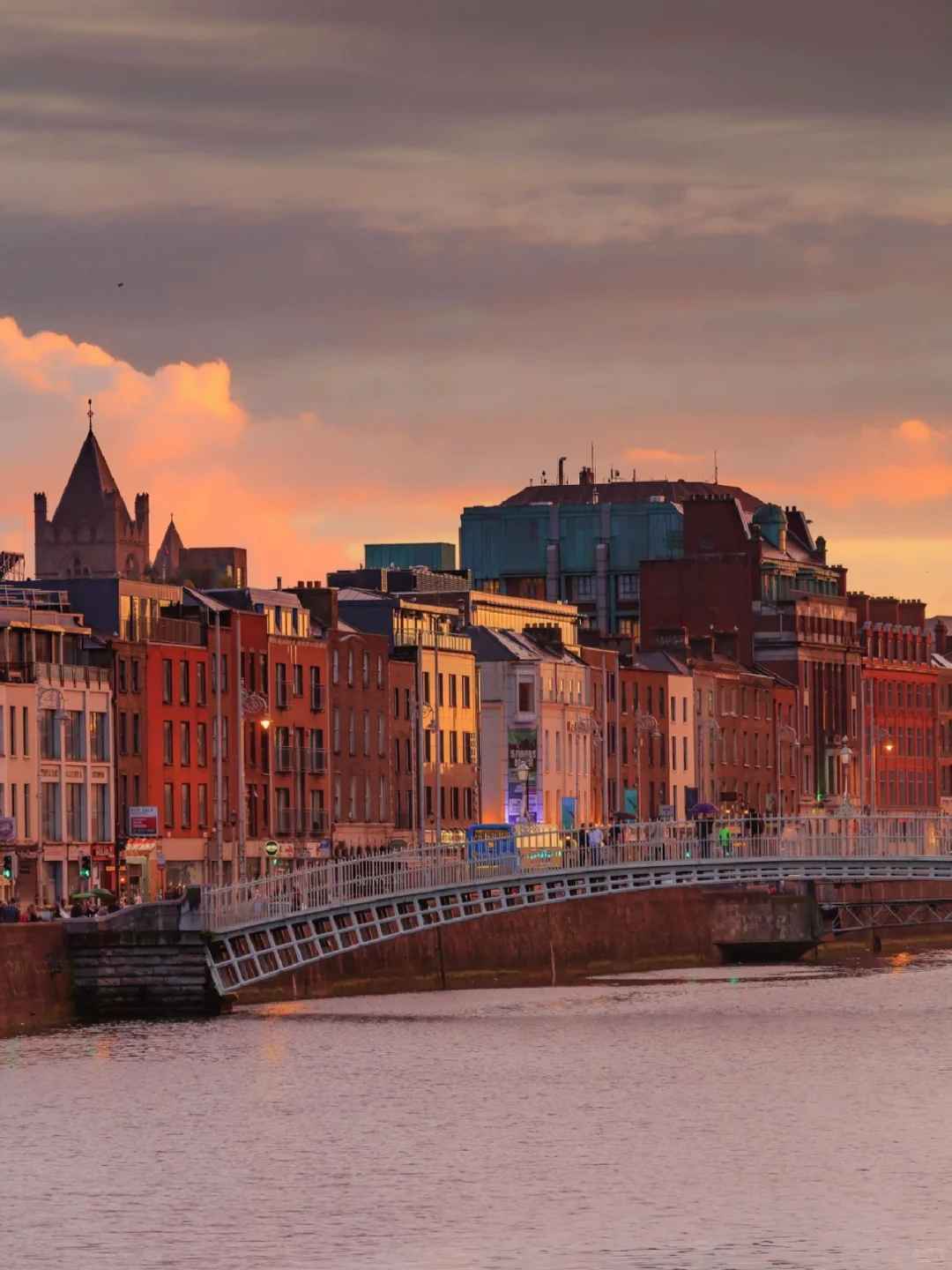 In 1816, the Irish built an exquisitely designed pedestrian bridge over the River Liffey to connect the north and south urban areas of Dublin. After the bridge was completed, pedestrians had to pay a halfpenny "bridge toll", giving rise to the name "Ha'penny Bridge". At night, the Ha'penny Bridge is illuminated with yellow lights, resembling a golden curved bow poised to shoot, lying gracefully on the tranquil River Liffey. Although the halfpenny bridge toll has long been abolished, Dubliners still affectionately call it by this name, and the Ha'penny Bridge has become another scenic spot that carries the history of Dublin.